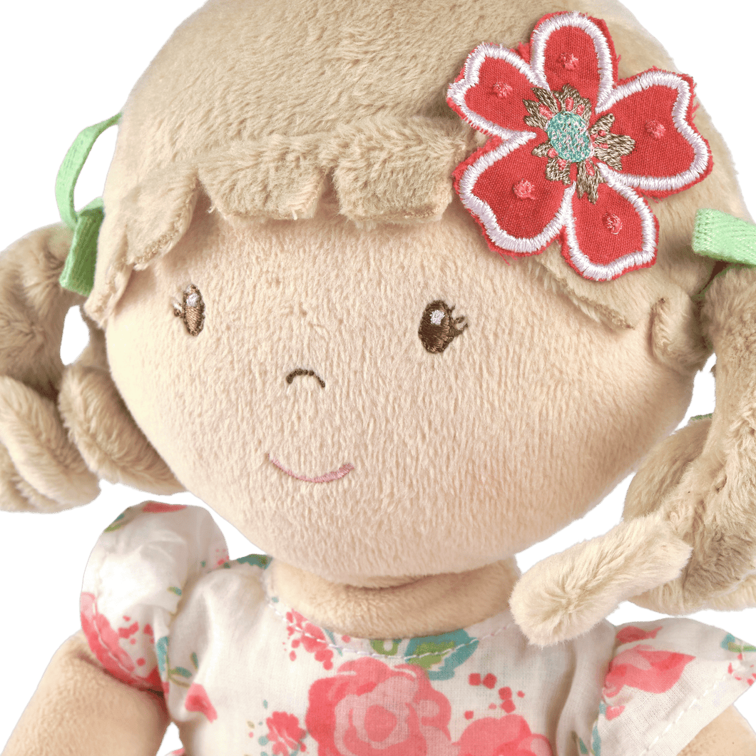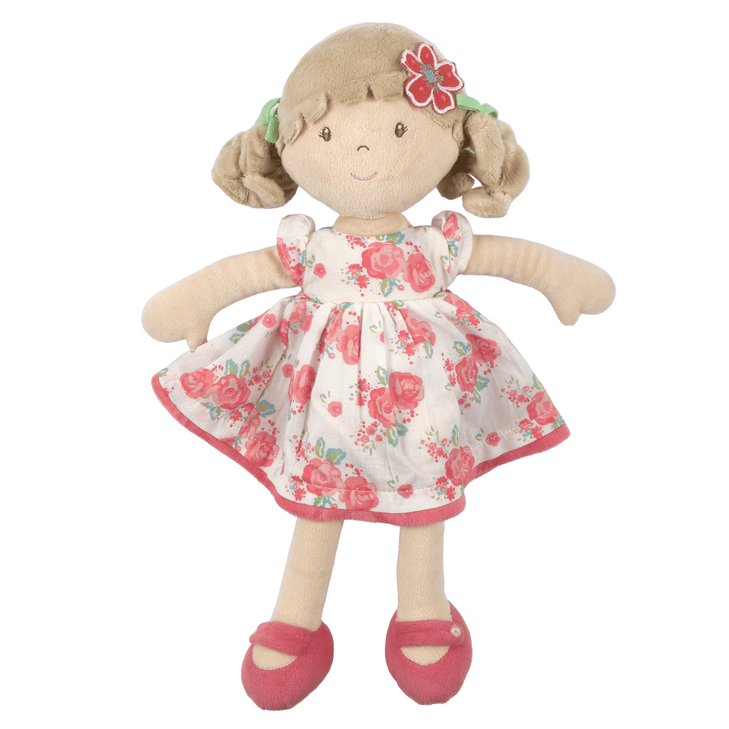 - Features: Soft body rag doll with embroidered facial features and printed clothing.